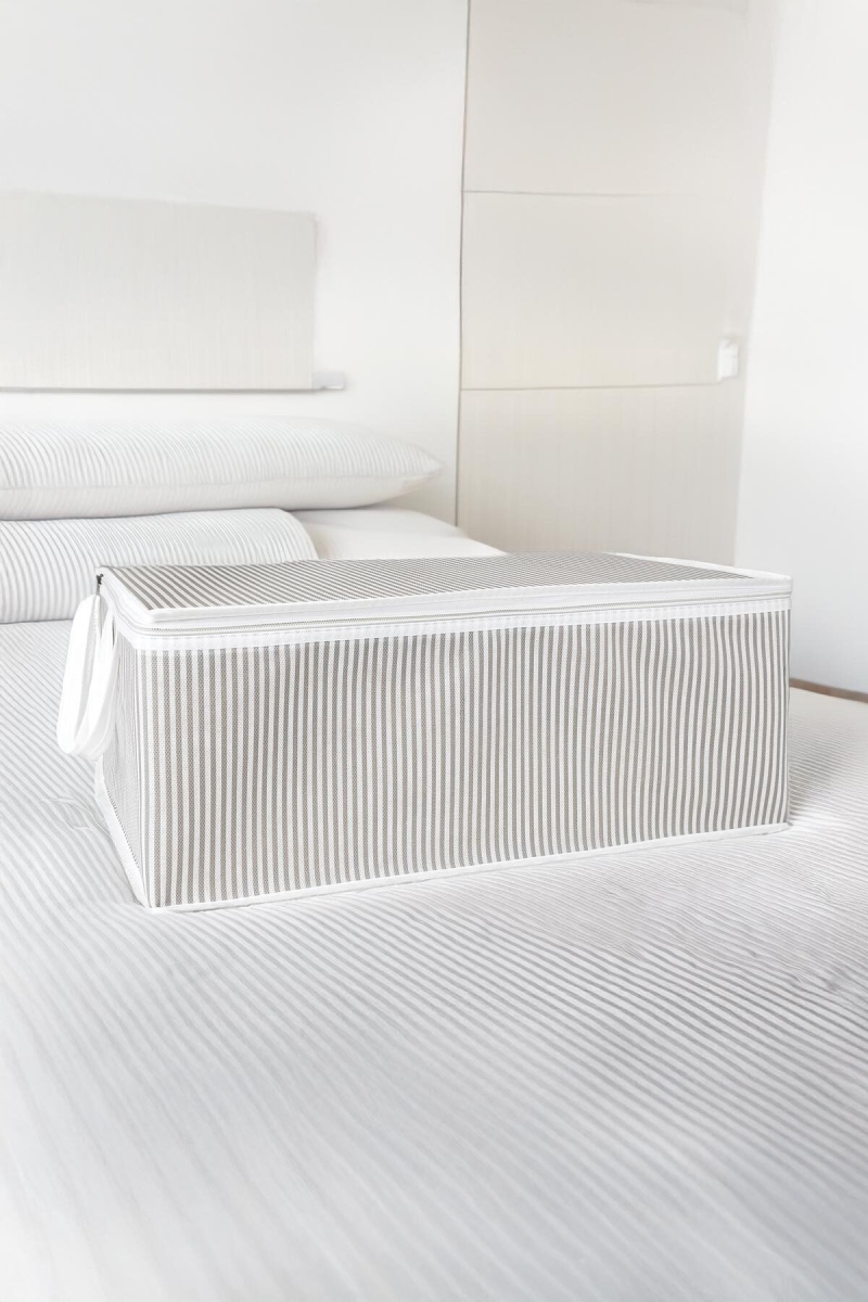 Pencereli Gri Çizgili Yorgan Hurcu - Dayanıklı ve Hafif Saklama Çantası 10249