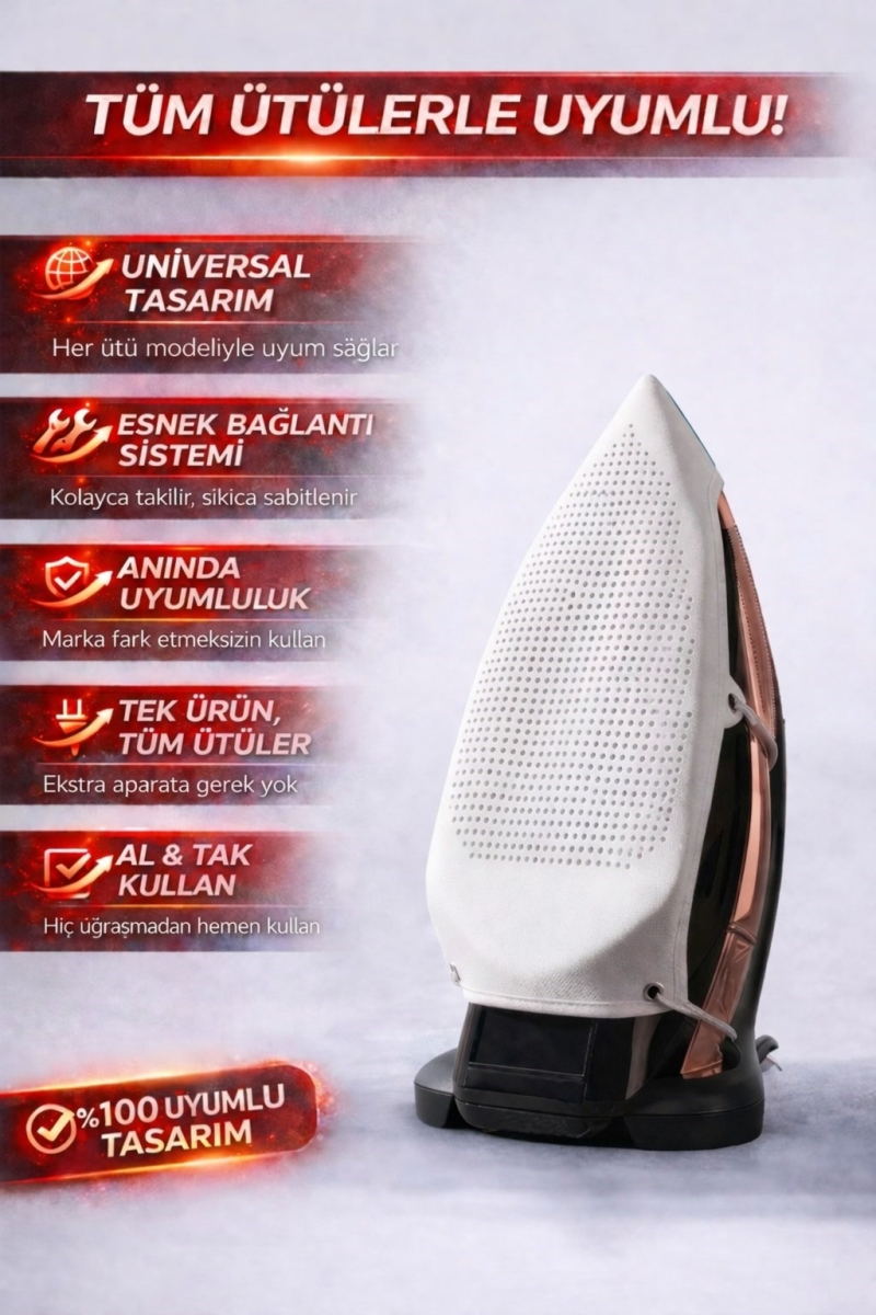 Özellikle koyu renkli kıyafetlerde sıkça yaşanan parlama problemini ortadan kaldırır ve ütünüzün kumaş üzerinde daha rahat ve kaygan hareket etmesini sağlar. Tüm ütülerle uyumlu yapısı sayesinde kolayca takılır ve hemen kullanıma hazırdır.