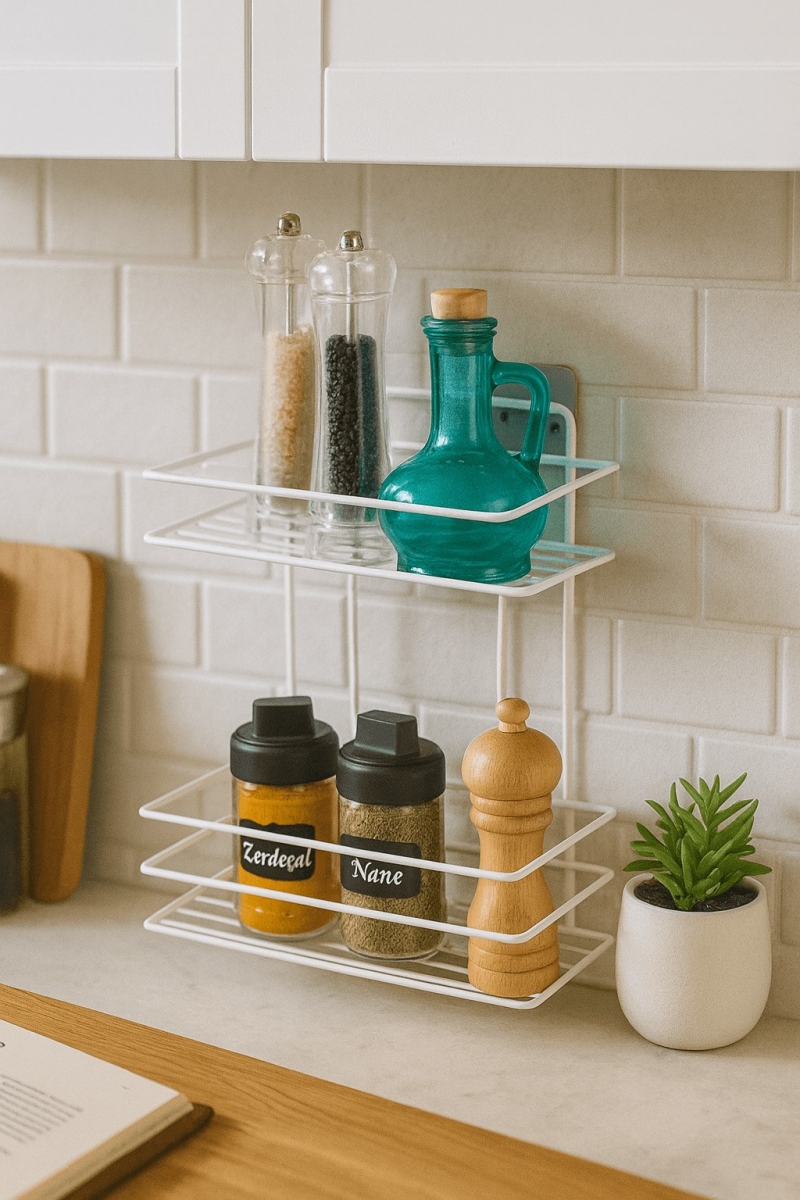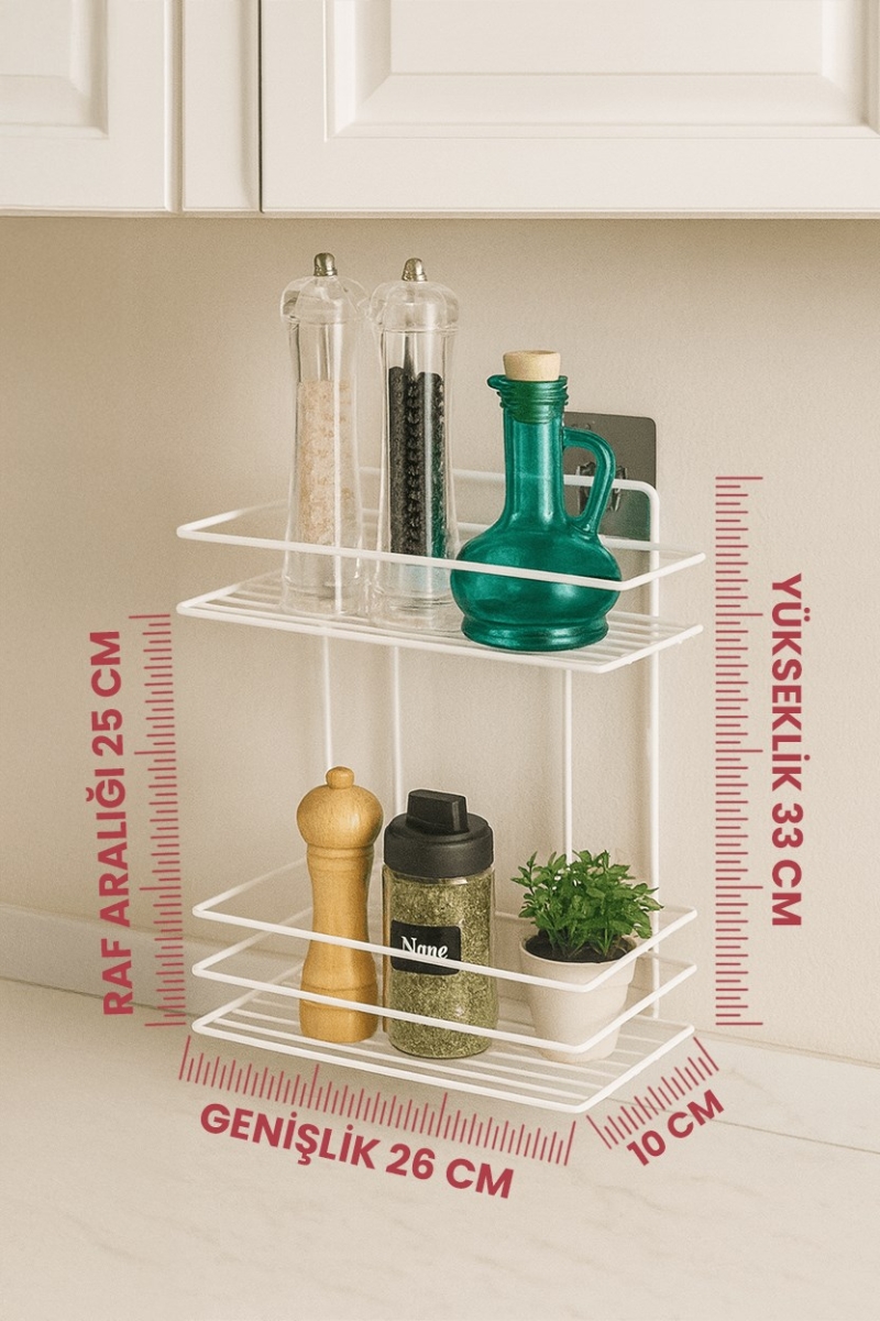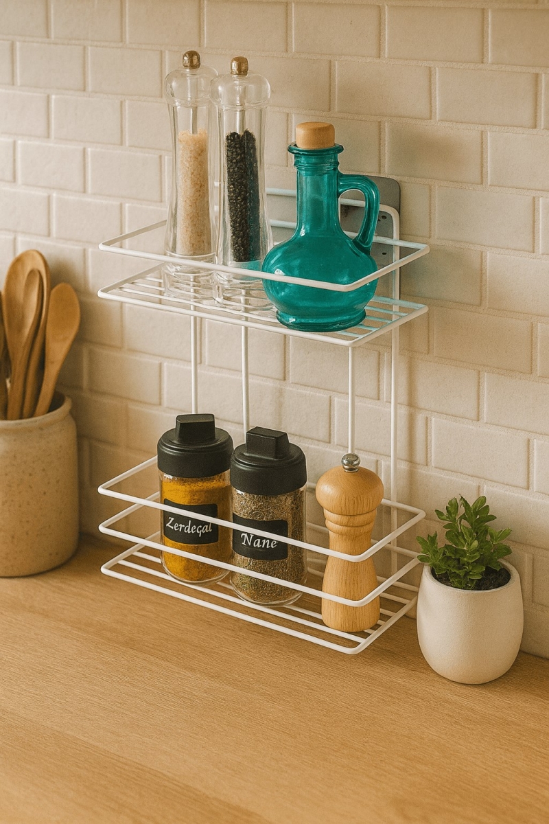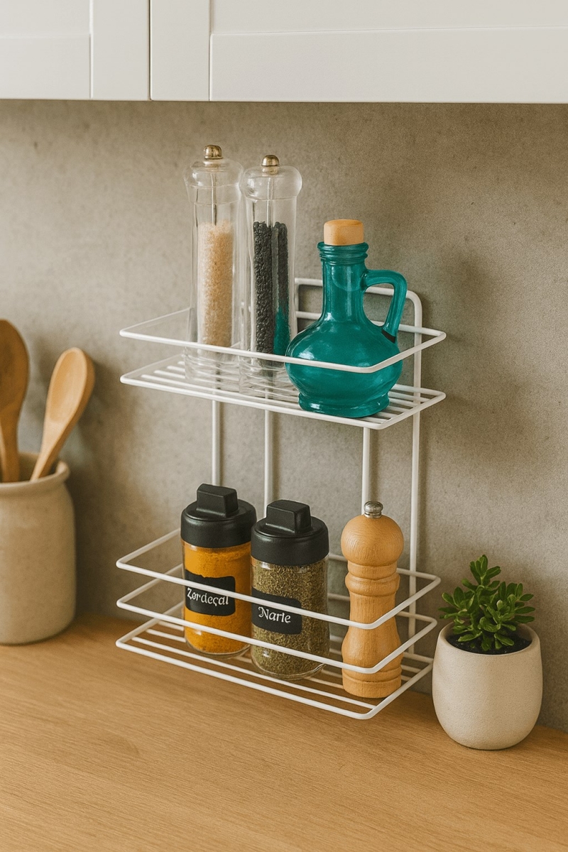 - 1× 2 Katlı Mutfak Askısı & Baharatlık Rafı (TŞ-02) – Beyaz