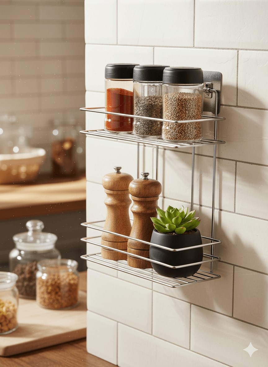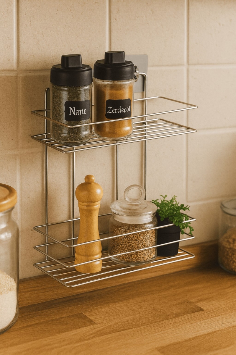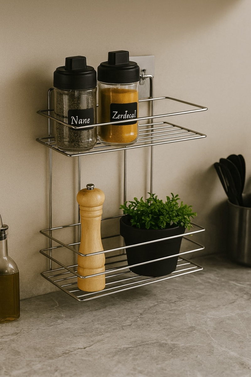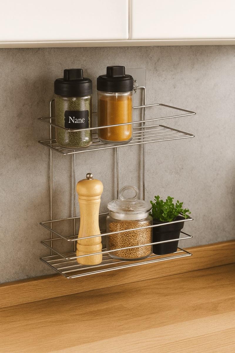 - 1× 2 Katlı Mutfak Askısı & Baharatlık Rafı (TŞ-02) – Krom
