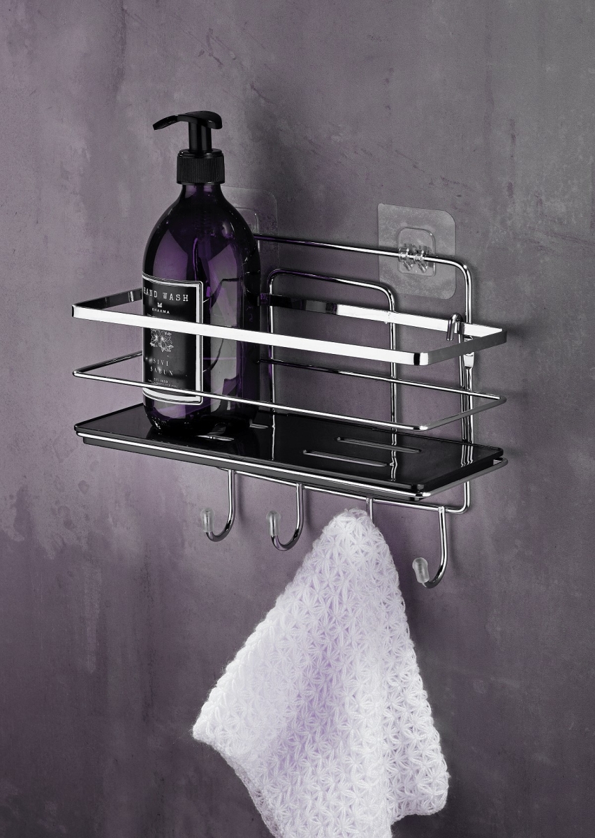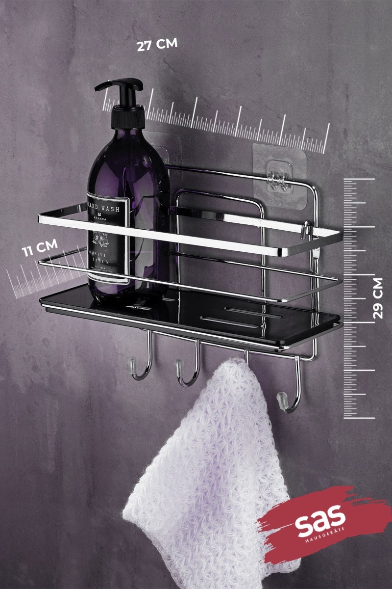 - 1 Adet Krom-Siyah Kristal Detaylı Banyo Rafı