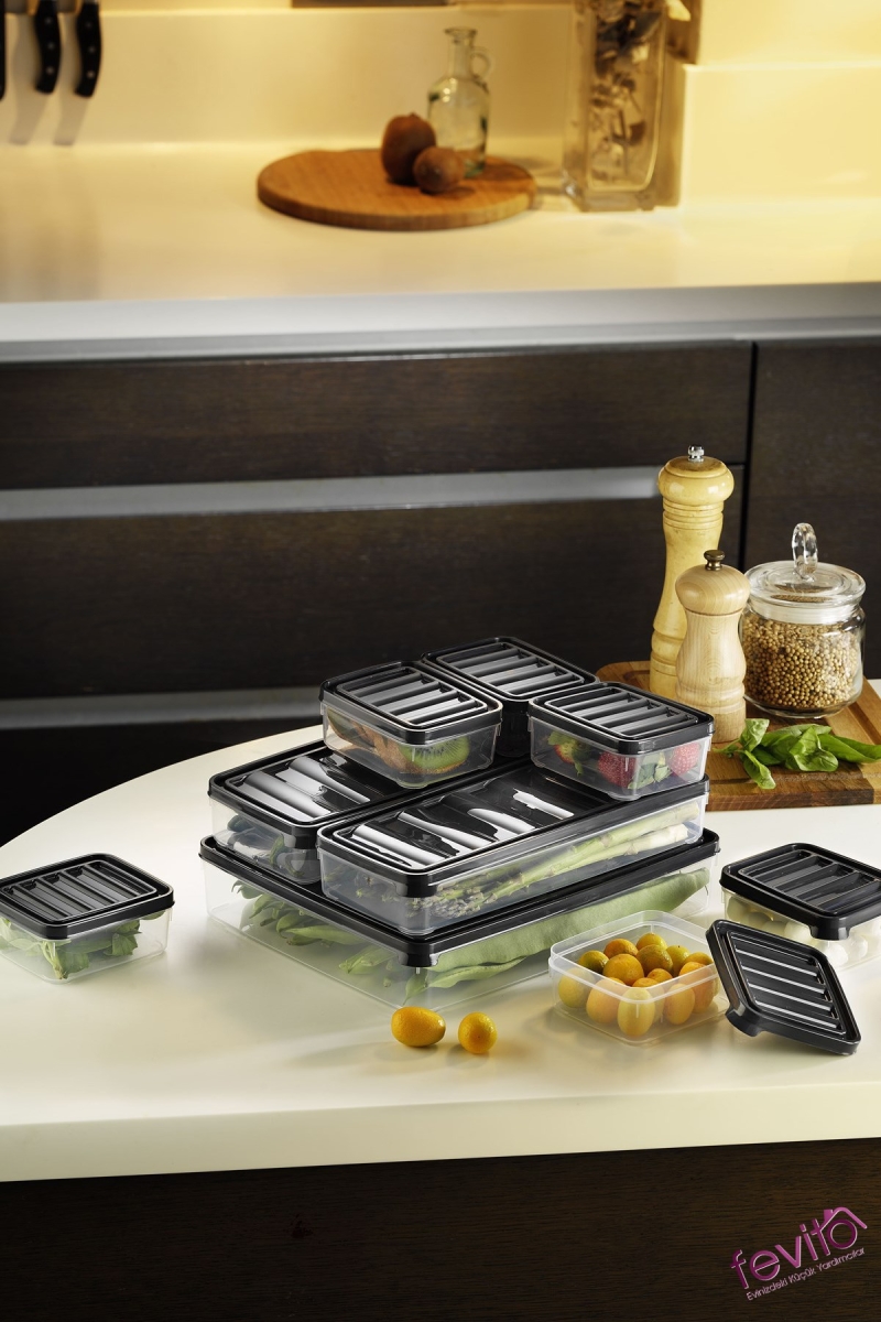 Küçük atıştırmalıklardan büyük porsiyonlara kadar her ihtiyacınıza uygun olan 9’lu antrasit saklama kabı seti, mutfakta tam düzen sağlamak için tasarlandı. Mikrodalga ve derin dondurucu uyumlu yapısı sayesinde hem sıcak hem soğuk gıdalarda güvenle kullanılır.