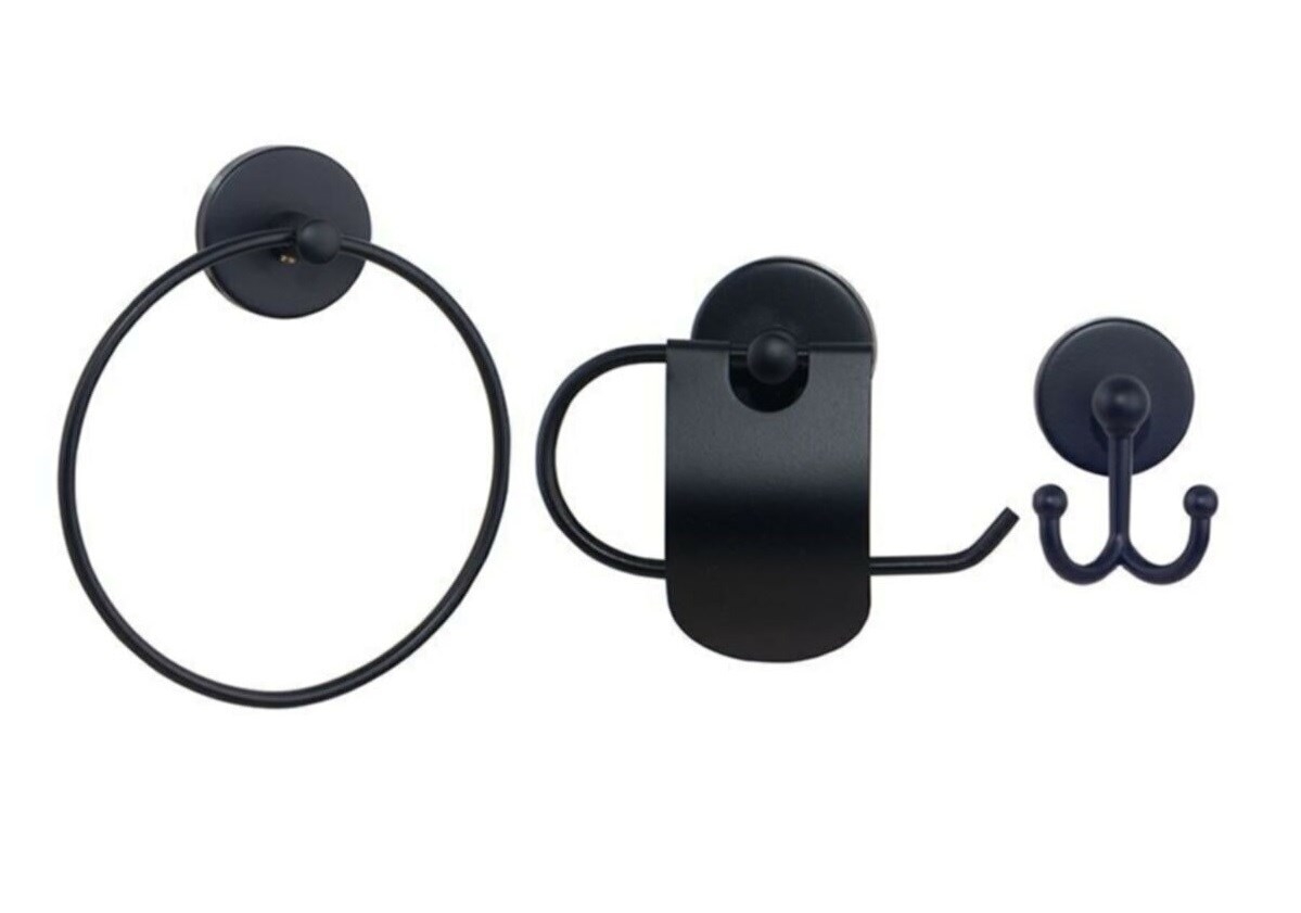 Banyo Aksesuar Seti Yuvarlak Havluluk Kapaklı Tuvalet Kağıtlığı 3 Lü Set SİYAH