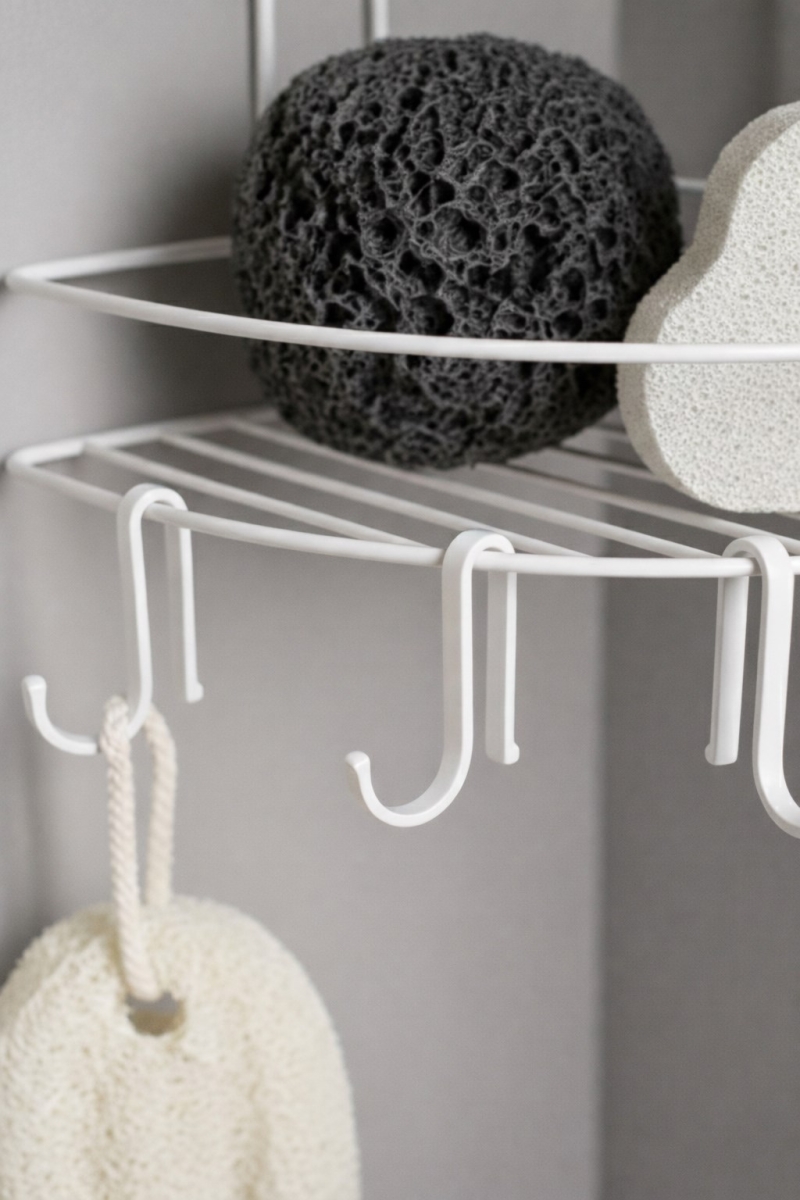 4 Adet Hareketli Kanca: Alt kısımda yer alan seyyar kancaların yerlerini dilediğiniz gibi değiştirebilir; lif, banyo fırçası ve diğer aksesuarlarınızı ihtiyacınıza göre asabilirsiniz.