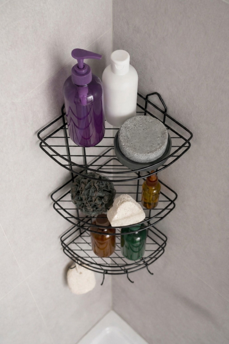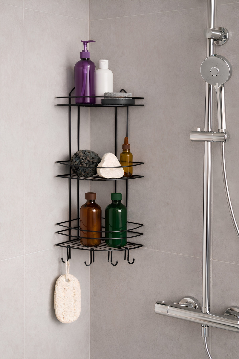 ✔️ 3 Katlı Geniş Raf: Şampuan, duş jeli, sabun ve bakım ürünleri için bol depolama alanı.