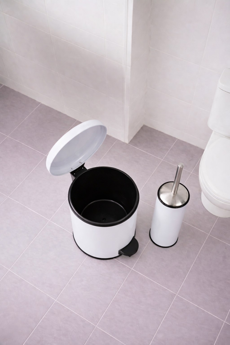 Paket İçeriği: 1 Adet Metal Pedallı Çöp Kovası + 1 Adet Metal Tuvalet Fırçası
