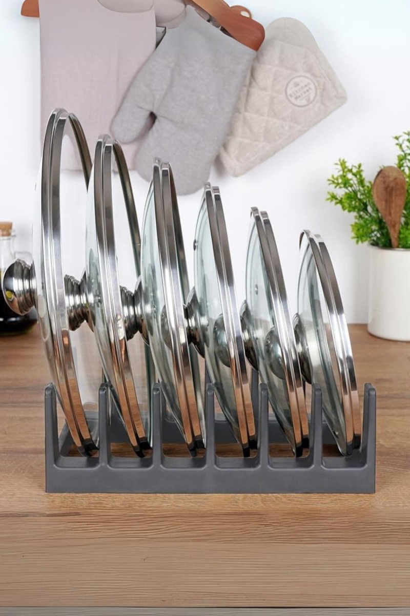 Mutfak dolabınızda kaos yerine düzen mi istiyorsunuz? 6’lı göz tasarımıyla tabak, tava ve tencere kapaklarınızı dik olarak sabitleyen; kesme tahtası, tepsi ve farklı boyutlardaki mutfak gereçlerinizi de rahatça saklamanızı sağlayan bu gri organizer ile hem dolap içlerinizi hem de çekmecelerinizi tertemiz tutabilirsiniz. Hafif, şık ve son derece işlevsel!