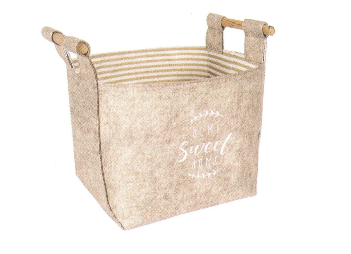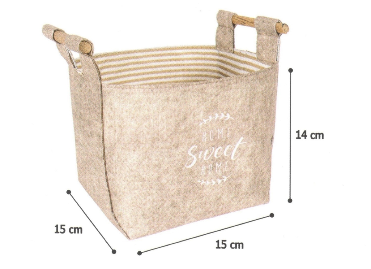 Keçe Tahta Saplı Düzenleyici Sepet - Çok Amaçlı Saklama Organizer Kutu Mini Kahverengi