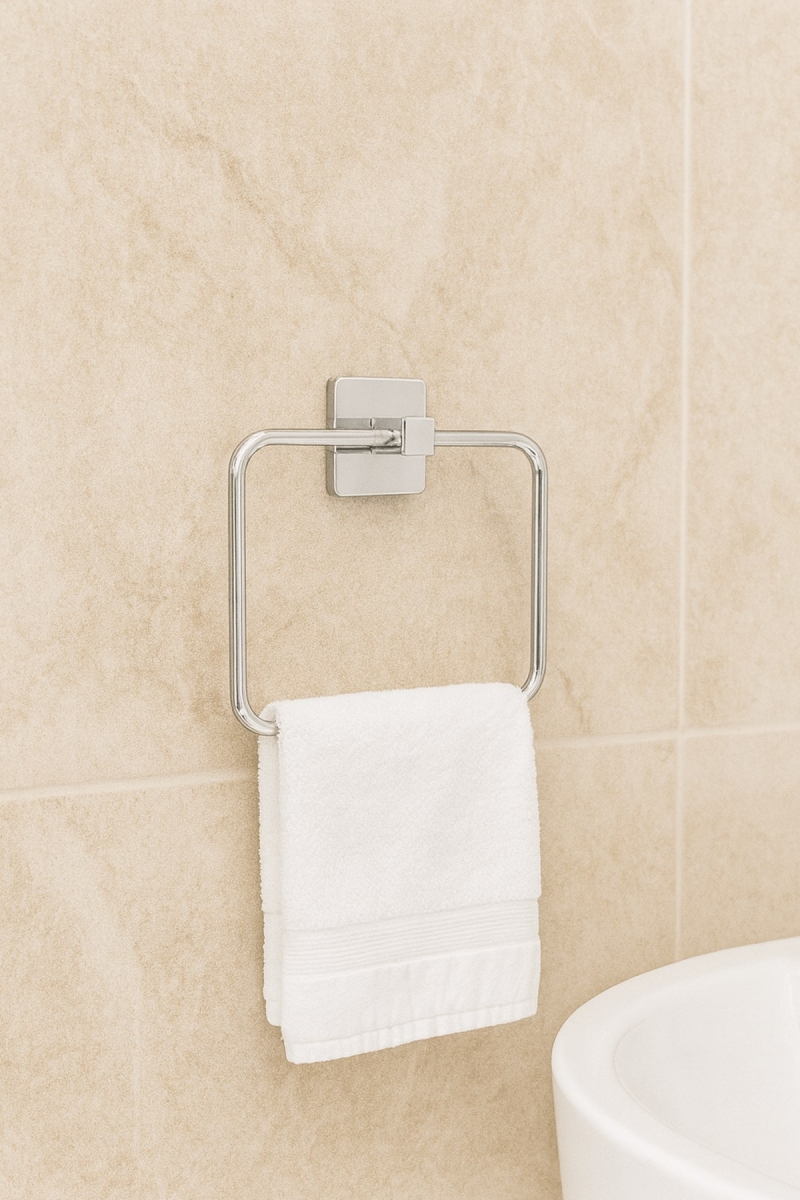 Banyonuzda sade ama etkileyici bir görünüm arayanlar için tasarlanan Krom Kare Topuzlu Kare Havluluk, modern formu ve parlak krom kaplamasıyla hem estetik hem de dayanıklı bir kullanım sunar.