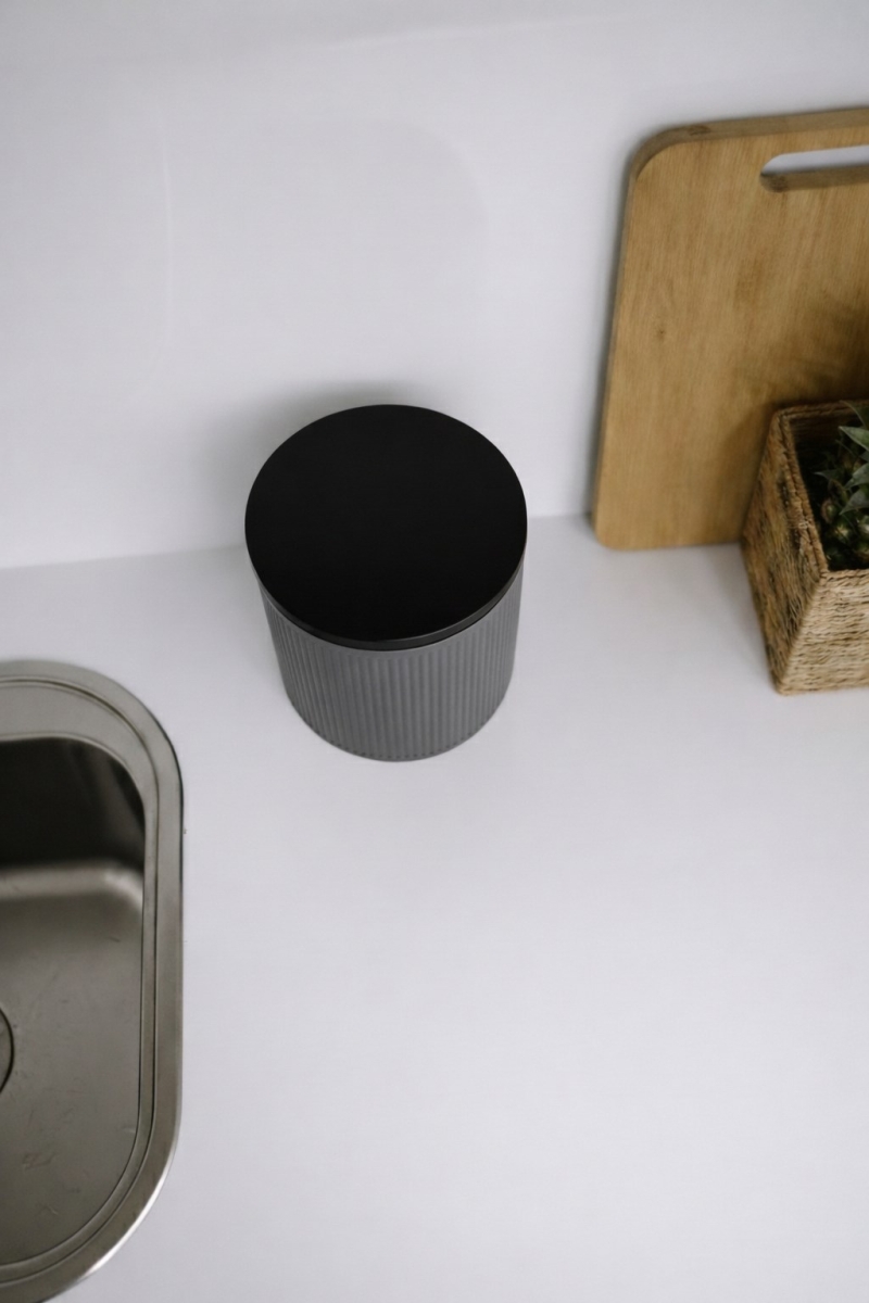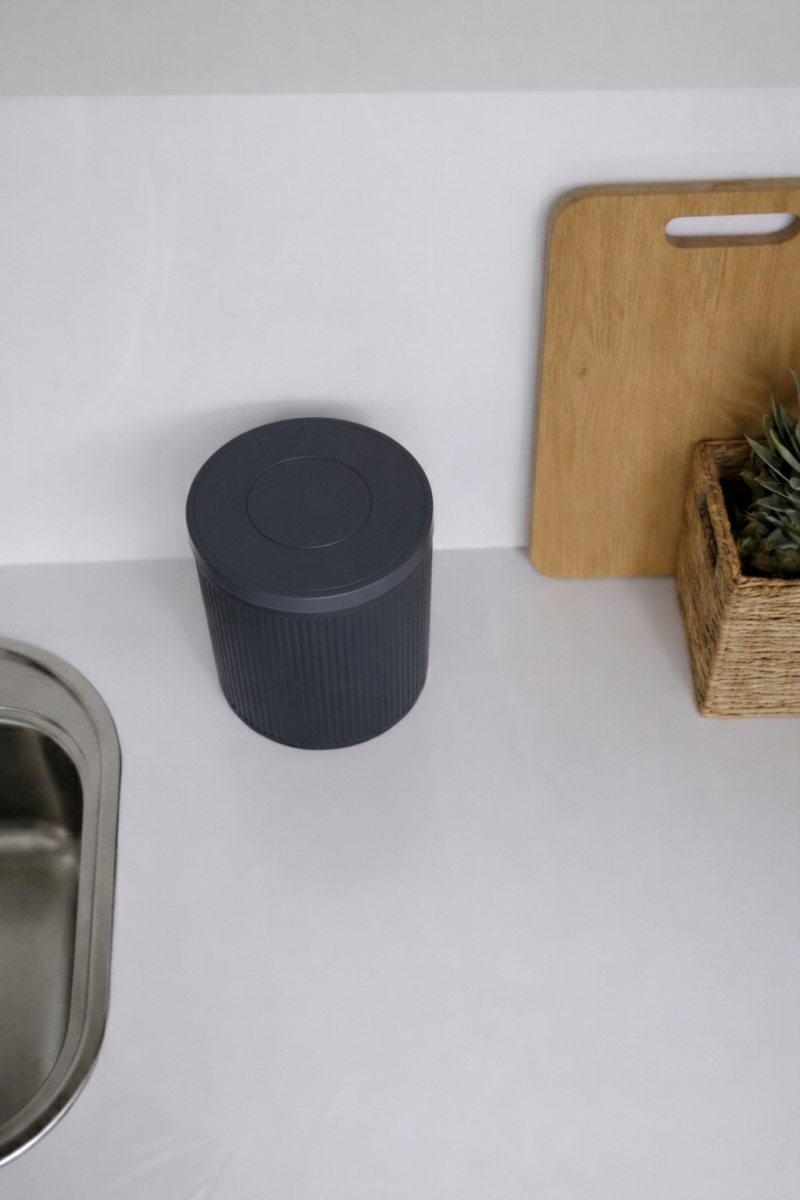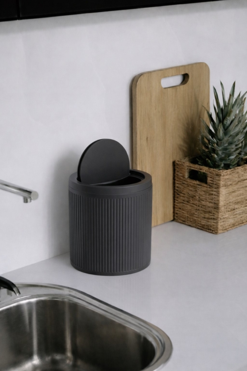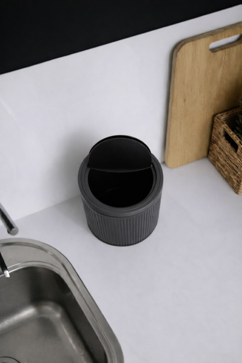 Lines Lüks Çizgili Tezgah Üstü Mutfak Çöp Kovası - Gri Kapaklı Atık Kutusu 5 Litre 3372