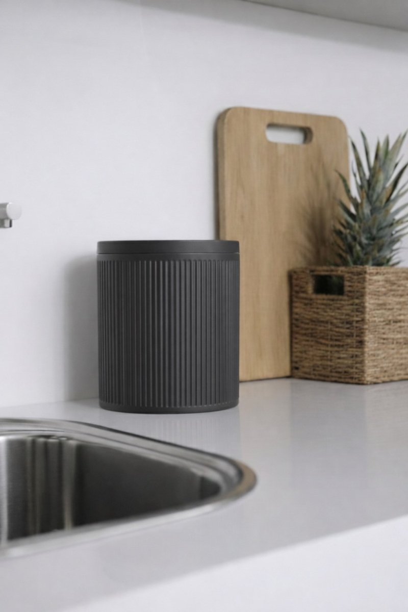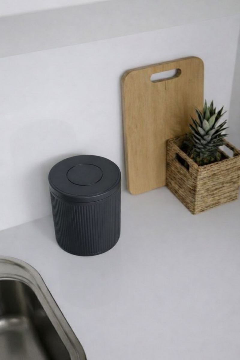 Lines Lüks Çizgili Tezgah Üstü Mutfak Çöp Kovası - Siyah Kapaklı Atık Kutusu 5 Litre 3372