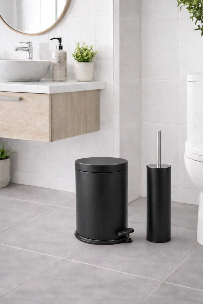 Paket İçeriği: 1 Adet Metal Pedallı Çöp Kovası + 1 Adet Metal Tuvalet Fırçası