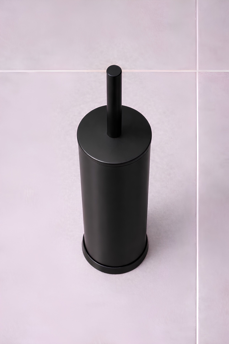 Metal Tuvalet Fırçası - Modern Banyo Klozet Fırça Takımı - Kapaklı Tasarım Titan Siyah 7000