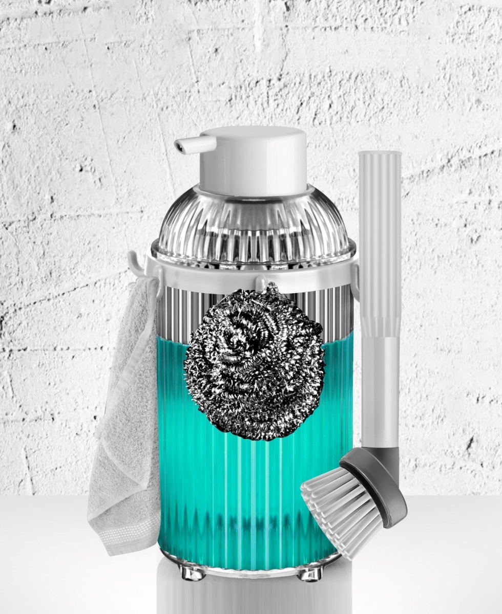 Pompalı sabunluk sistemi sayesinde tek dokunuşla sabun alabilir, bulaşık fırçası ile etkili temizlik sağlayabilirsiniz. Sünger ve bez için özel alanı sayesinde mutfak tezgahınızda düzen sağlar.