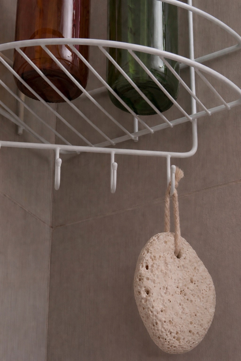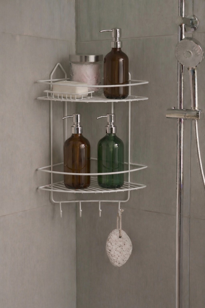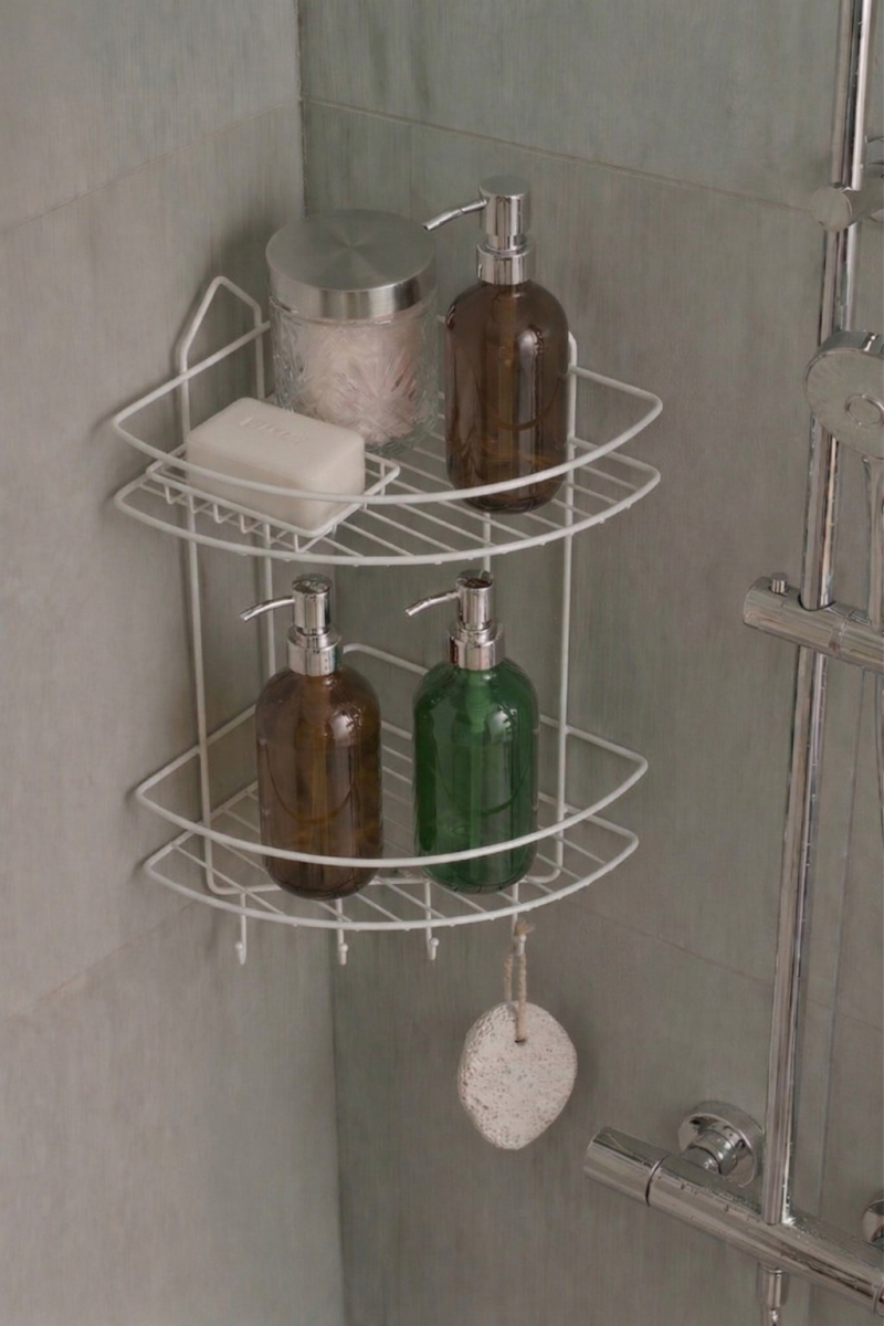 Termoplastik kaplamalı, paslanmaya karşı dayanıklı metal gövdesiyle üretilen bu 2 katlı yapışkanlı beyaz banyo köşeliği, şampuan, duş jeli ve tüm banyo malzemelerinizi düzenli bir şekilde depolamanıza olanak tanır. Artık eklenen 4 güçlü kanca sayesinde lif, kese, tarak, havlu ve benzeri banyo aksesuarlarınızı da kolayca asabilir, banyonuzda maksimum düzen ve fonksiyonellik sağlayabilirsiniz.
