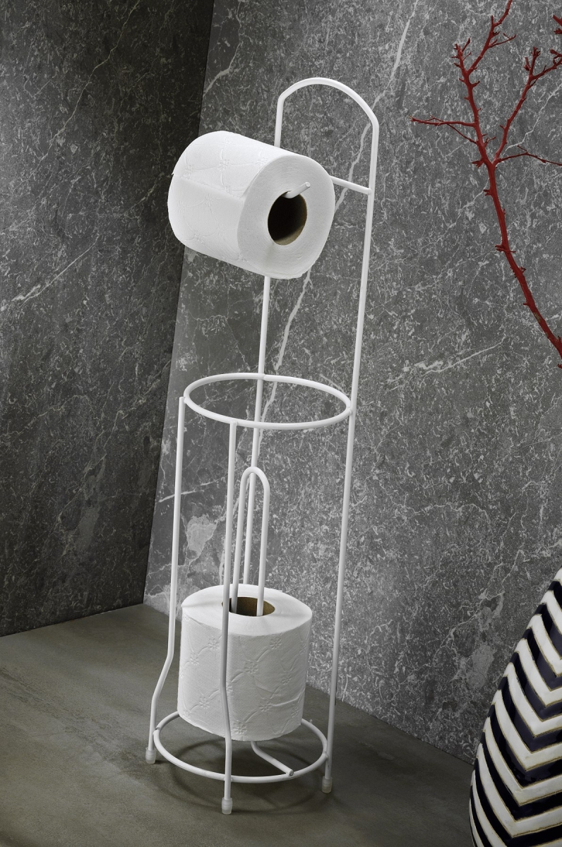 Beyaz Ayaklı Kare Tuvalet Kağıtlığı, Yedek Rulo Hazneli, Paslanmaya Dayanıklı WC Kağıtlık