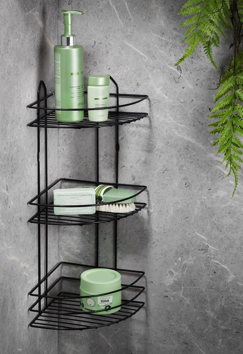 Banyo Köşe Rafı Askılı Duş Organizeri ve Şampuanlık 3 Katlı Siyah EK-03