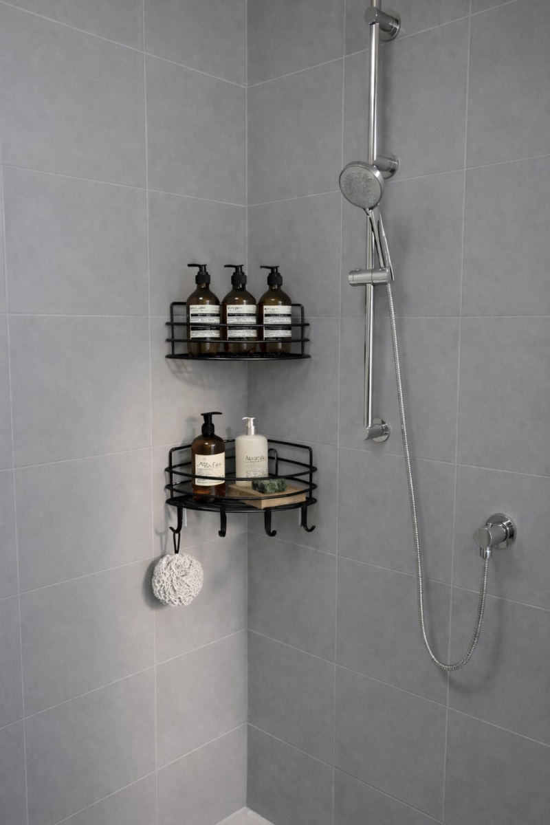 • Banyonuzda şampuan, duş jeli ve sabunlarınızı düzenli şekilde toplamak için tasarlanan tek katlı köşe duş rafı, köşe alanını verimli kullanarak yer tasarrufu sağlar. Bu ürün 2 adet olarak gönderilir; duş alanında iki farklı köşede veya ihtiyacınıza göre aynı bölgede kullanarak daha düzenli bir görünüm elde edebilirsiniz. Alt kısmındaki kancalar sayesinde lif, kese ve benzeri banyo aksesuarlarını kolayca asabilirsiniz. Minimal ve modern tasarımı birçok banyo dekoruna uyum sağlar.
