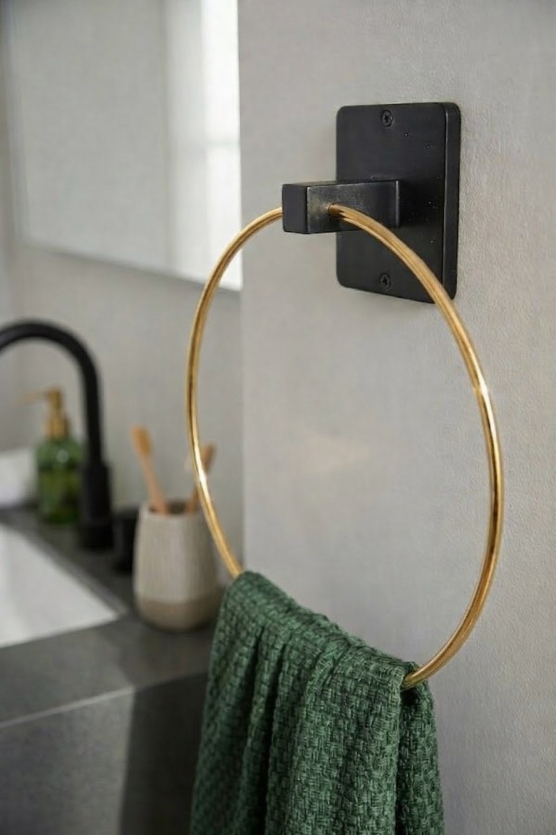 Yapışkanlı Gold Halka Havluluk, banyonuza hem şıklık hem de pratiklik kazandırır. Delme gerektirmeyen yapısı sayesinde duvarlarınıza zarar vermeden kolayca monte edilir ve anında kullanıma hazır hale gelir. Modern altın renk tasarımı ile banyo dekorasyonunuza estetik bir dokunuş katar.