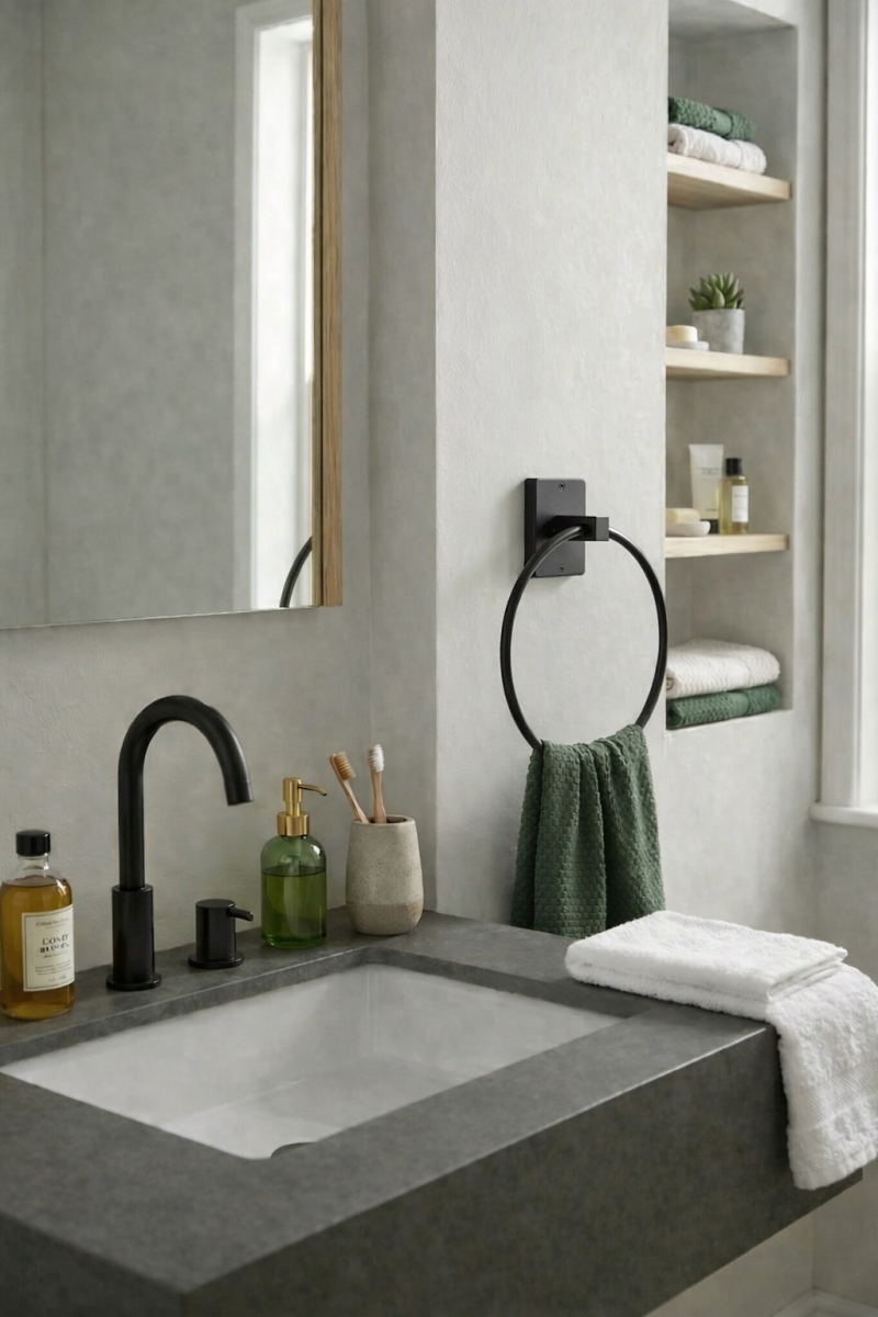 Güçlü yapışkan yüzeyi sayesinde sağlam tutuş sağlar ve havlularınızı güvenle asmanıza yardımcı olur. Kompakt ve kullanışlı halka formu ile hem küçük hem büyük banyolar için ideal bir çözümdür.