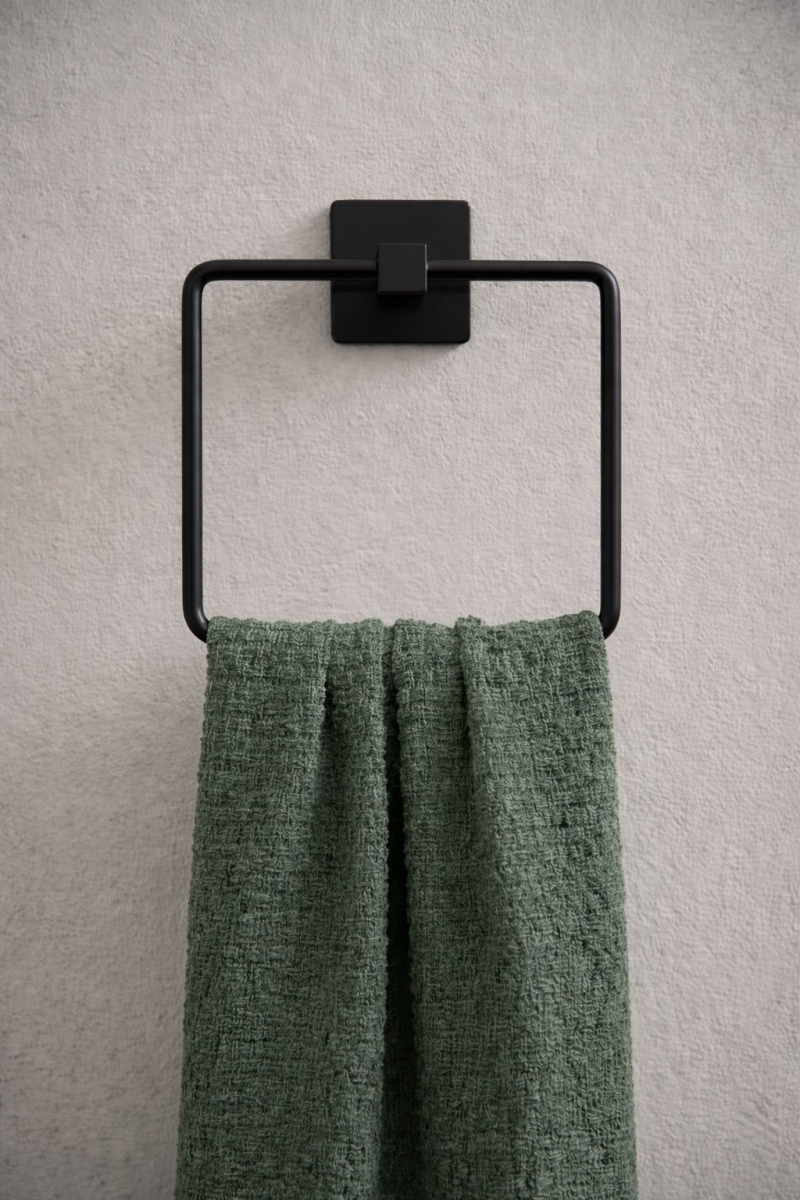 Yapışkanlı Siyah Kare Havluluk, banyonuza hem şıklık hem de pratiklik kazandırır. Delme gerektirmeyen yapısı sayesinde duvarlarınıza zarar vermeden kolayca monte edilir ve anında kullanıma hazır hale gelir. Modern siyah renk tasarımı ile banyo dekorasyonunuza estetik bir dokunuş katar.